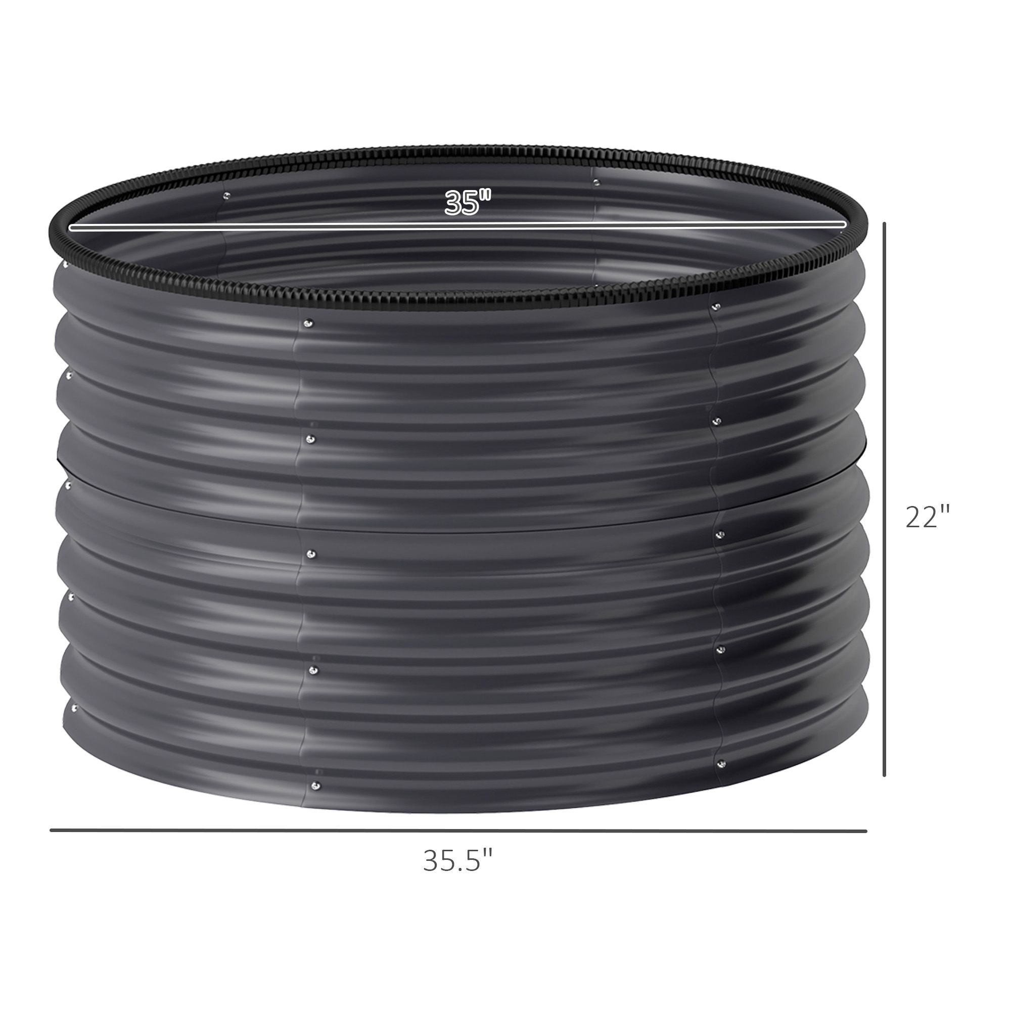 5.- Set of 2 Galvanized Raised Garden Beds Info: Overall Dimensions: 35.4" Dia. x 22" H. Planting Area: 35" Dia. x 22" H. Easy-to-assemble design..