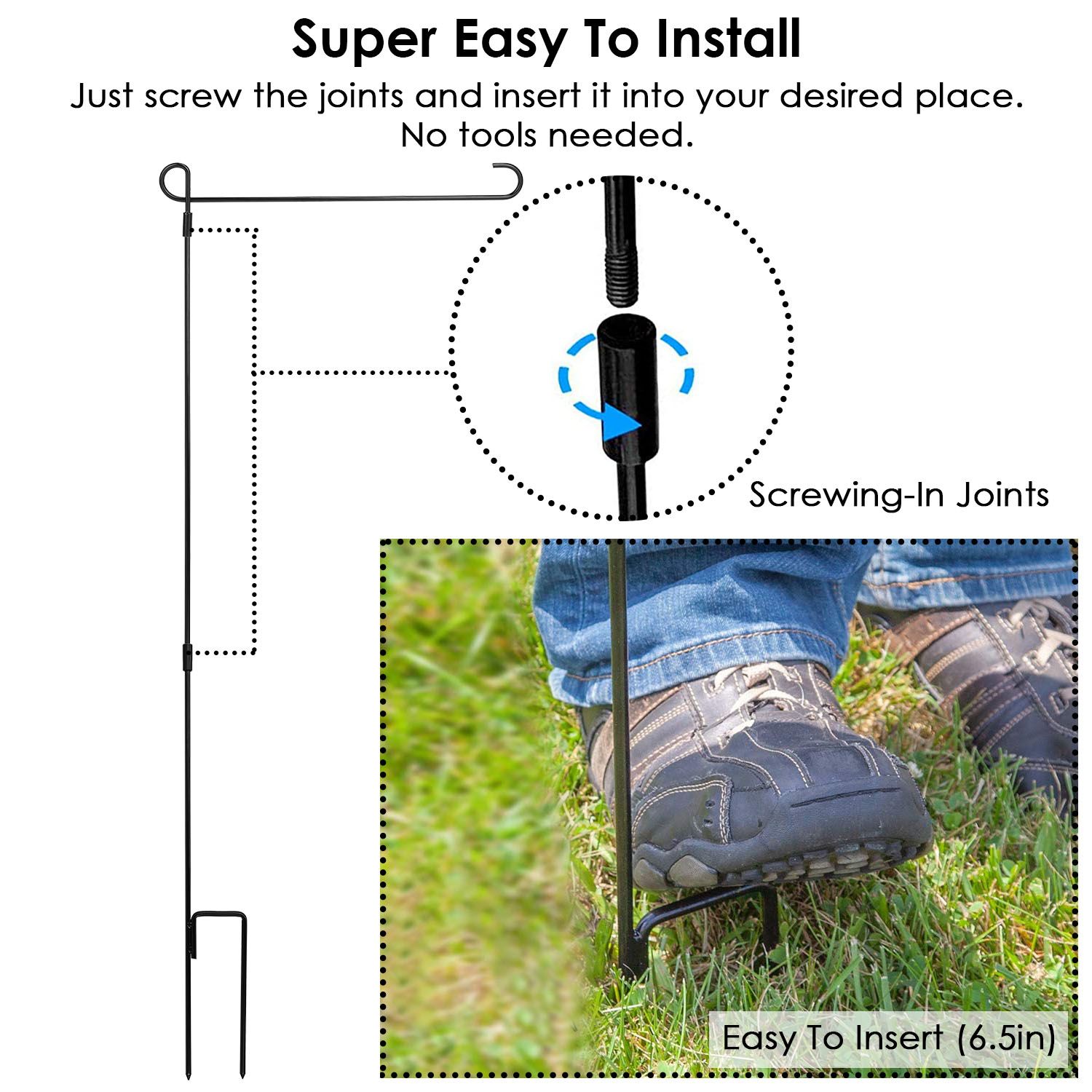 Made of sturdy iron materials and coated by black powder, our flag pole can definitely bear more weight without bending and easy to rust under severe weather. Come with 3 removable poles, you can easily assemble it with no tools less than 1 minute to decorate your garden with American flag, Halloween flag, etc. in a special day!