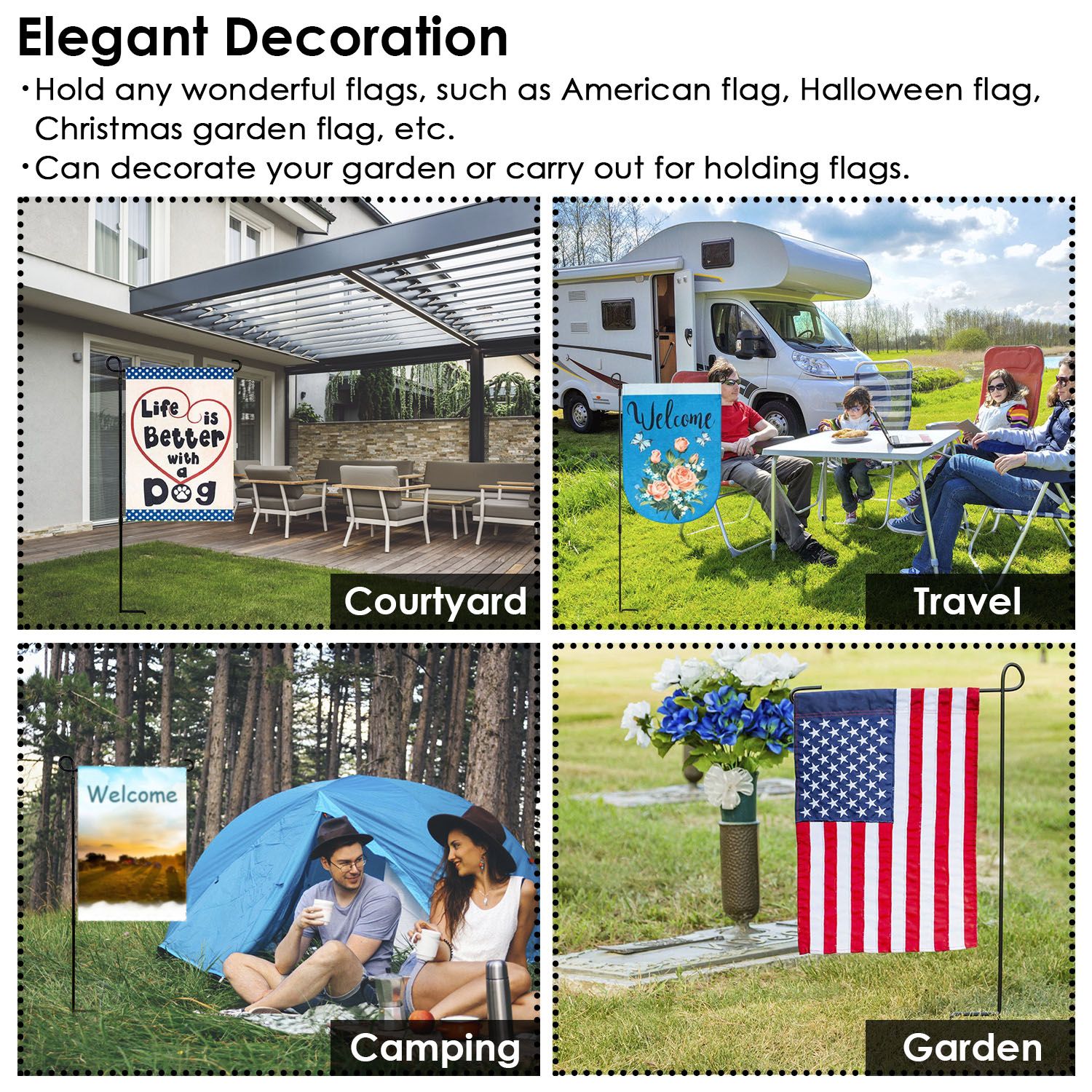 Decorate Your Garden: The flag stand can hold any wonderful flags, such as American flag, Halloween flag, Christmas garden flag or other garden flags to decorate your beautiful garden in a very special day!