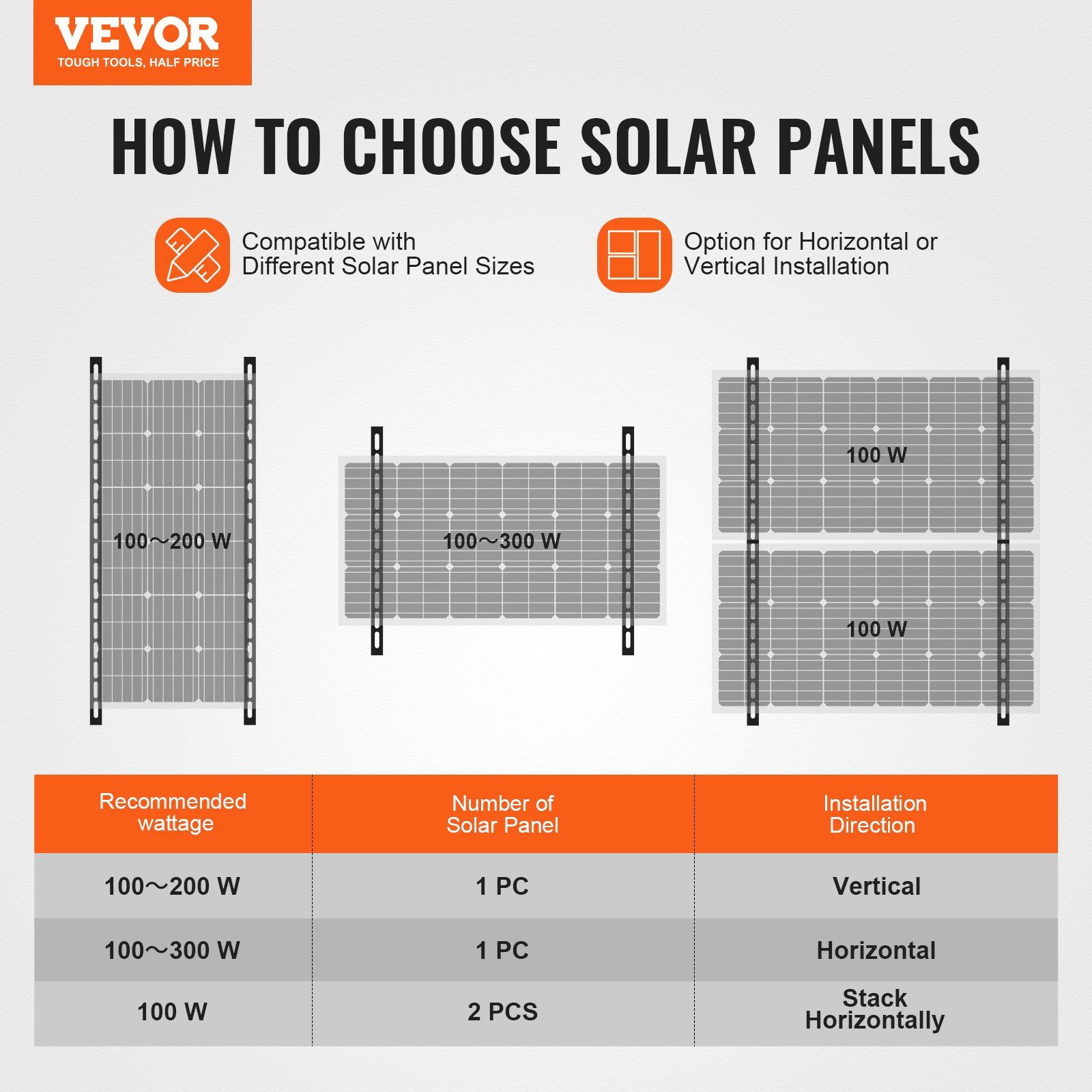 Designed with a flexible 0-90° adjustment, the VEVOR solar panel mount brackets allow you to easily adjust the angle to capture maximum sunlight and significantly boost energy efficiency.