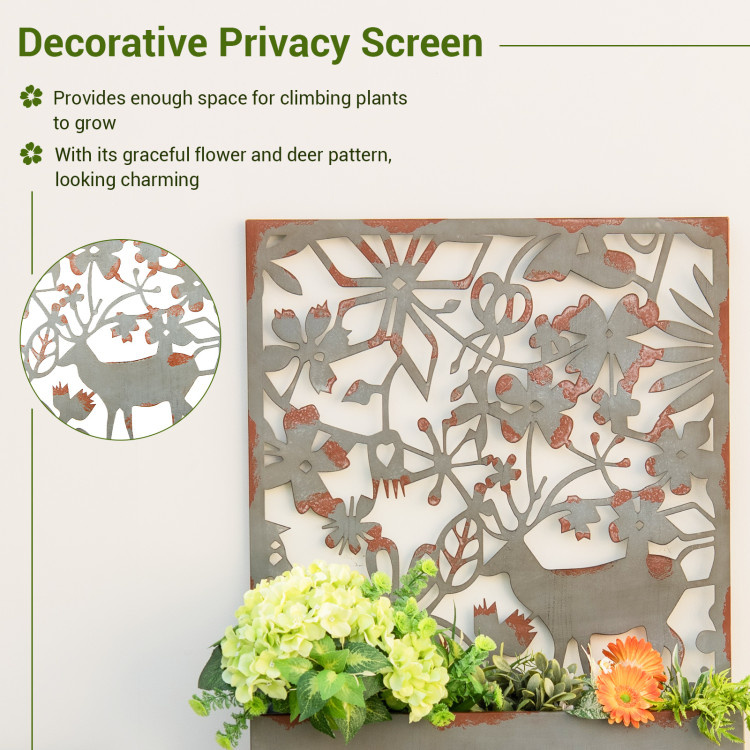 ● Decorative Privacy Screen: The planter set includes 2 raised garden beds, which are designed with trellises that can be used for climbing vines to grow up towards. And with its graceful flower and deer pattern, this metal planter looks charming and beautiful.