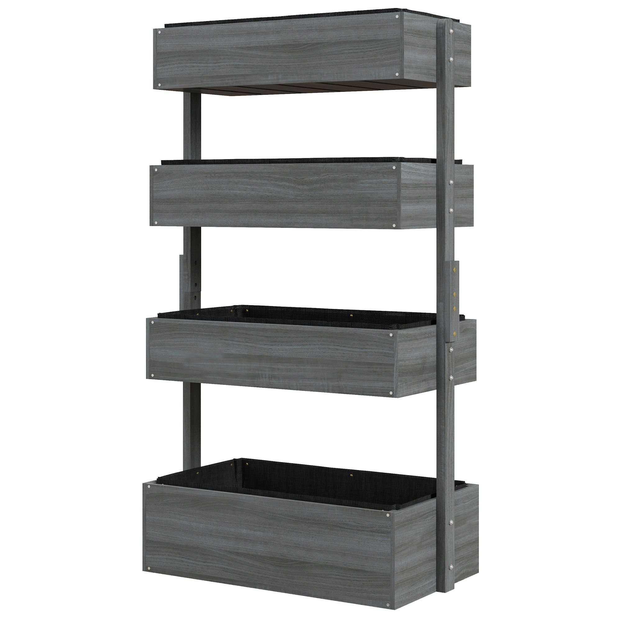 Home > Outsunny 4-Tier Wooden Garden Box, Self-Draining, Fabric Bottom, Tiered Save Space, Planter Box for Flowers, Vegetables, Herbs, Gray