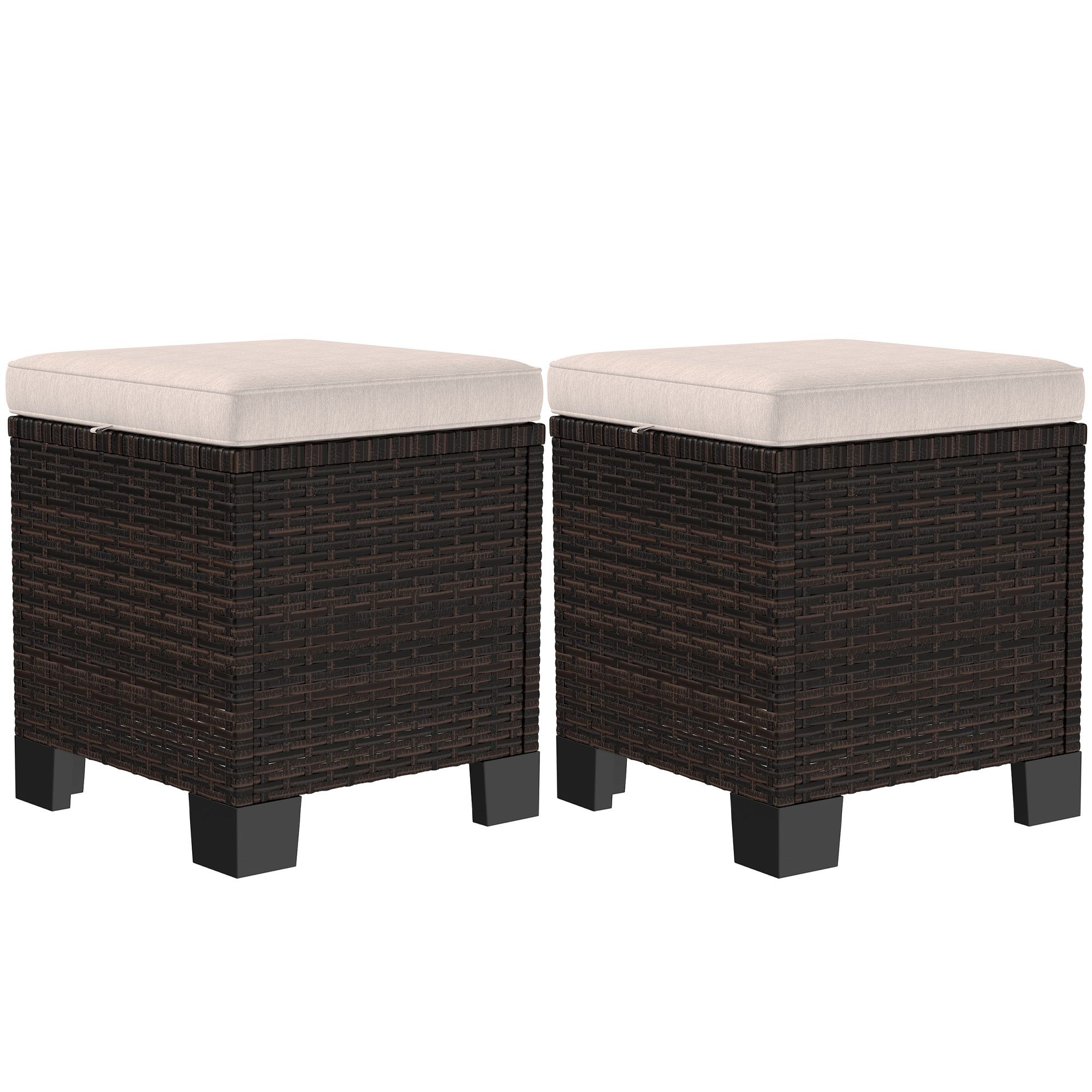 Bring handwoven wicker style to your backyard without weather worries with the Outsunny outdoor wicker ottoman set. These stylish footrests are tough enough for the outdoors, yet chic enough for indoors, letting you easily use them as footrests, stools, or side tables in either setting. The handwoven wicker exterior offers great protection against water, while the removable cushion covers make for stress-free cleanup, so you can relax in comfort without worry. Get out, get comfy, get Outsunny.
