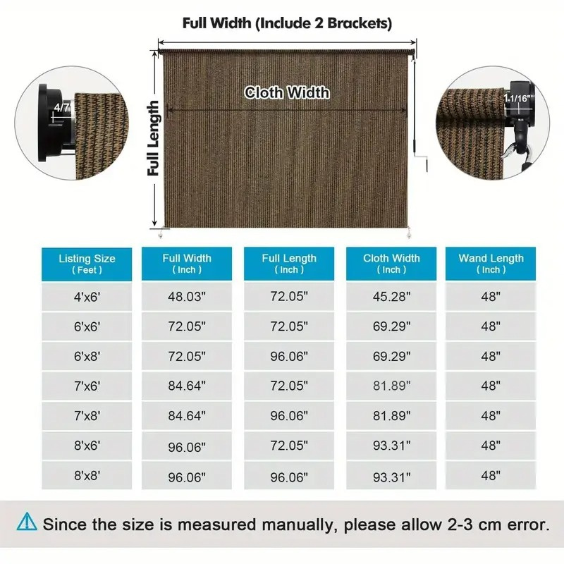 Upgrade your outdoor living space with this Outdoor Sun Shade Screen, a stylish and functional solution for sun protection and privacy. Designed with a cordless roll-up mechanism, this roller blind allows for safe, smooth, and customizable height adjustments—without the hassle of cords.